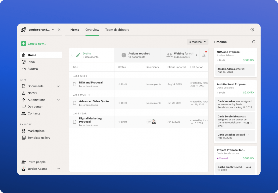 PandaDoc also enables your teams to create, send, and monitor documents all within the same tool, which prevents further application-switching and unnecessary follow-up.