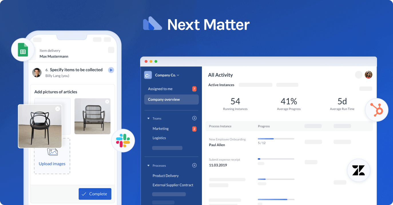 Next Matter is an all-in-one operations platform that enables teams to capture, visualize, automate, and execute their processes from end-to-end. Using Next Matter, teams transform their manual, email-driven operations into automated, digital processes that bring their team members, tools, workflows, instructions, and more in a simple-to-use, no-code/low-code system.