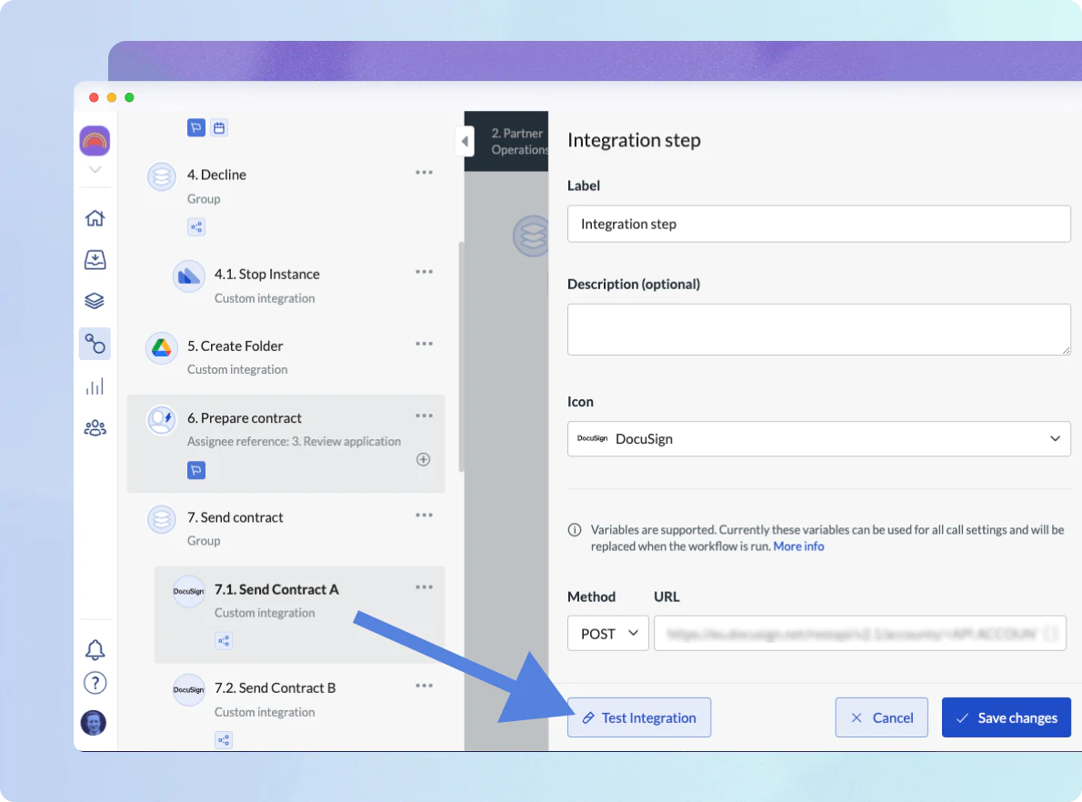 Builders can now test any integration without having to run a test instance of a workflow. That’s possible now with “Test Integration”.