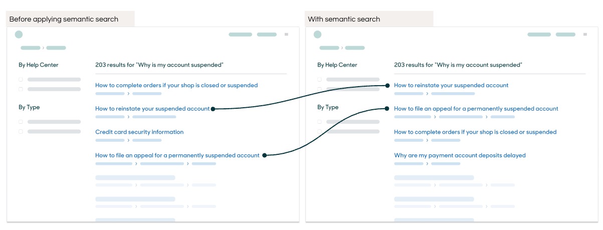 - Semantic search improves the quality of help center search results by making it easier for both agents and customers to find what they need. Semantic search aims to achieve this by using AI to analyze the semantic intent of users’ inquiries.