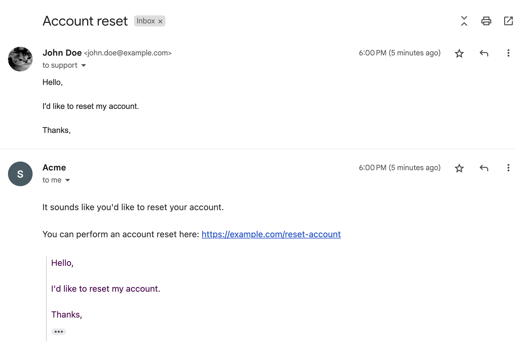 This means you can create customized responses for basic requests (eg ‘change address’), perhaps including instructions or a link to a relevant article. Done right, this should reduce the amount of agent intervention needed on simple requests.