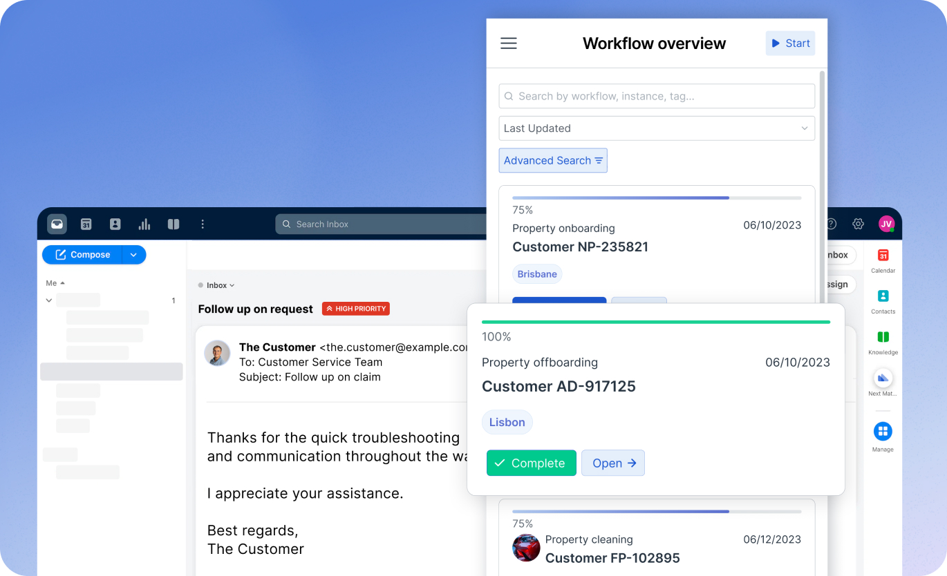 Next Matter quickly started working with the Houst and Front teams to replicate their old workflows. This would enable customer service agents to trigger, manage, and track the progress of processes like quality control and onboarding in the same Front interface where they checked emails and responded to guest messages.